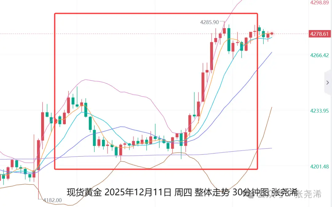 上交易日周四(12月11日):国际黄金继续反弹走强收阳,多头动力加大,并有所突破近期连续反弹的阻力压制,暗示后市看涨预期增强,短期有望继续反弹上行,触及4380美元乃至更高位置。